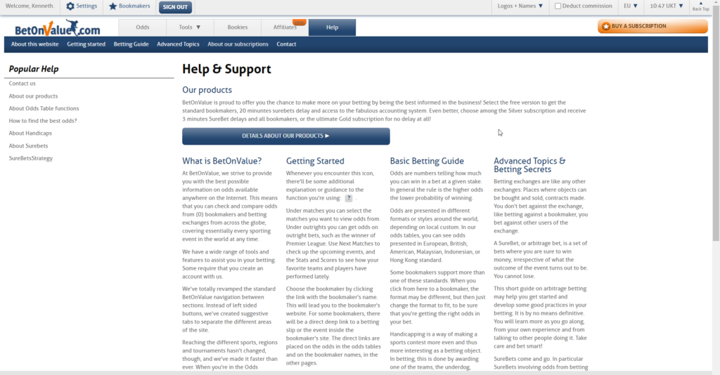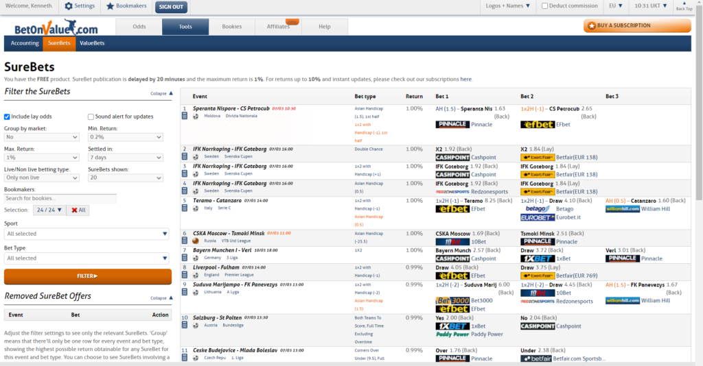 Only pre-match arbitrage bets and value bets are available on BetOnValue.